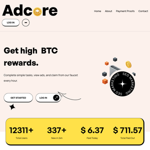 Adcore.top (PTC & Offers) uses FaucetPay payment method to pay its users, the first payment was sent 67 days ago. The PTC & Offers website is owned by melrock222 and currently has an health score of 13%.