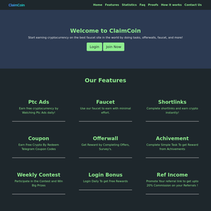 @ ClaimCoin @ (Mining) uses FaucetPay payment method to pay its users, the first payment was sent 782 days ago. The Mining website is owned by claimcoinads and currently has an health score of 0%.