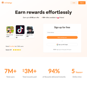 Coinpayu.com (PTC & Offers) uses FaucetPay payment method to pay its users, the first payment was sent 1995 days ago. The PTC & Offers website is owned by nightdancer and currently has an health score of 46%.