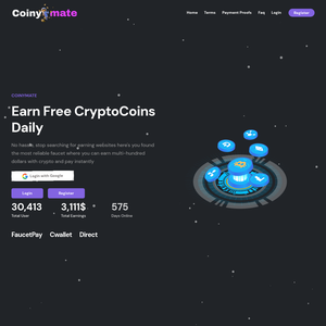 Coinymate (Faucet) uses FaucetPay payment method to pay its users, the first payment was sent 576 days ago. The Faucet website is owned by notinterested and currently has an health score of 1%.