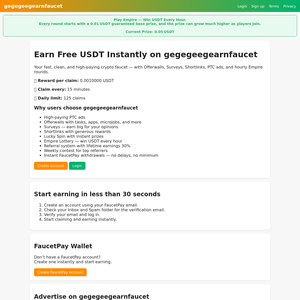 gegegeegearnfaucet (Ad-Network) uses FaucetPay payment method to pay its users, the first payment was sent 27 days ago. The Ad-Network website is owned by huhuhuhi and currently has an health score of 48%.