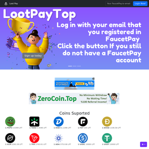 Loot Pay Top (Mining) uses FaucetPay payment method to pay its users, the first payment was sent 837 days ago. The Mining website is owned by alesya and currently has an health score of 100%.